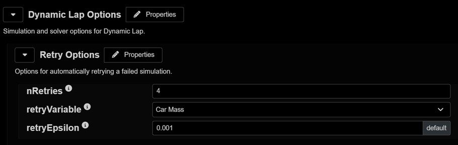 The most requested feature is the ability to re‑run failed exploration jobs. Dynamic Lap Retry Options address this by slightly adjusting car mass and re‑running the simulation. Simply enable this option when staging a run.